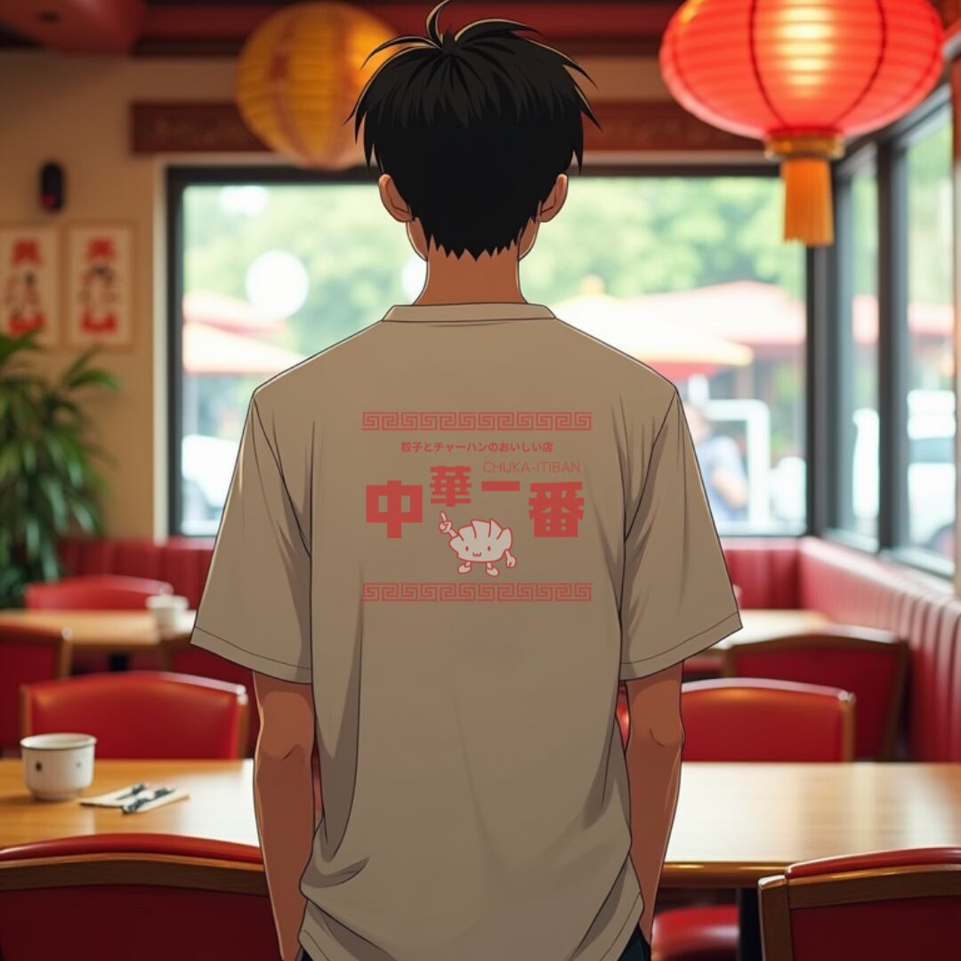 ストリートにも馴染むレトロ中華フォント。飲食業っぽいけどファッション映え黒Tなら中華バイト感、白Tならカルチャー感。街中でも、イベントでも、「何それw」って言われる一着。中華愛と遊び心を、胸にどうぞ。